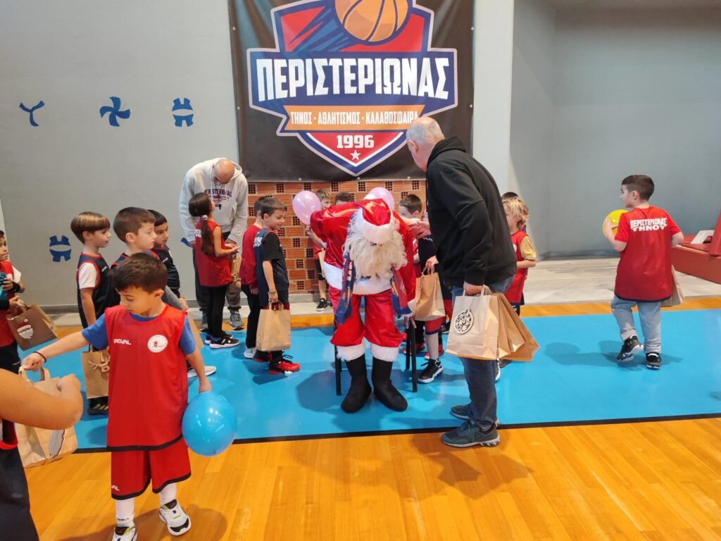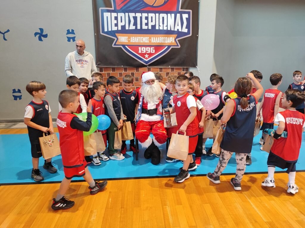 Ο Άγιος Βασίλης επισκέφτηκε το Κλειστό Γυμναστήριο της Τήνου και μοίρασε δώρα και χαμόγελα στα μικρά παιδιά της Α’ και Β’ Δημοτικού. Κάθε εύστοχο καλάθι και ένα σακουλάκι με λιχουδιές και αναμνηστικά δώρα με το σήμα του Περιστεριώνα. Ευχόμαστε Καλά Χριστούγεννα σε όλα τα παιδιά και τις οικογένειές τους.