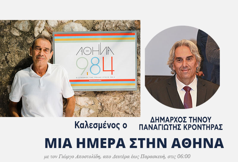 Αύριο πρωί Τετάρτης 24/1 στις 6.30πμ στην εκπομπή “Μια Ημέρα στην Αθήνα” του Γιώργου Αποστολίδη, καλεσμένος ο Δήμαρχος Τήνου Παναγιώτης Κροντηράς.