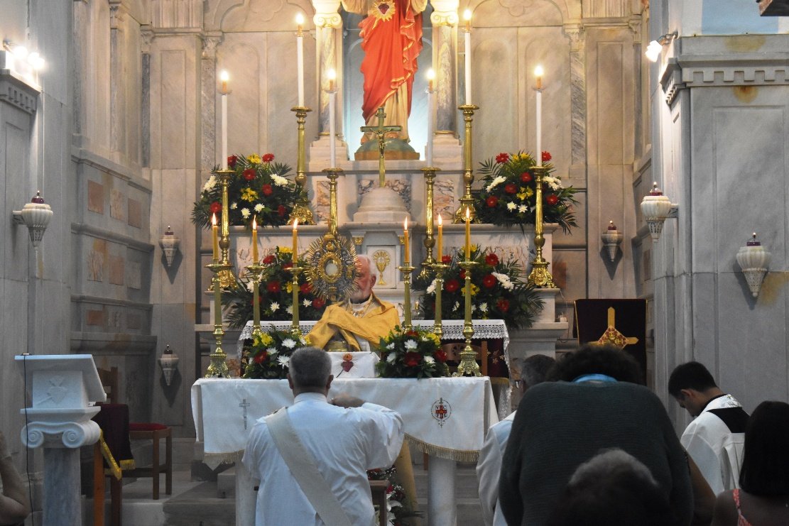 Η Ιερή Καρδία του Ιησού συγκέντρωσε ευλαβείς πιστούς της στο λόφο του Εξωμβούργου, όπου εορτάσθηκε πανηγυρικά η ευσπλαχνία του Κυρίου, με την τέλεση Ακολουθιών και Θείων Λειτουργιών.