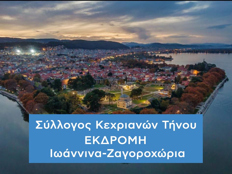 ο σύλλογος μας είναι στην ευχάριστη θέση να σας ανακοινώσει πως διοργανώνει εκδρομή στα Ιωάννινα-Ζαγοροχώρια στις 22/02 – 25/02/2024. Η διαμονή θα πραγματοποιηθεί στο ξενοδοχείο 3 αστέρων Palladion Hotel και η τιμή κατ’άτομο είναι: 215€ σε δίκλινο και 275€ σε μονόκλινο.