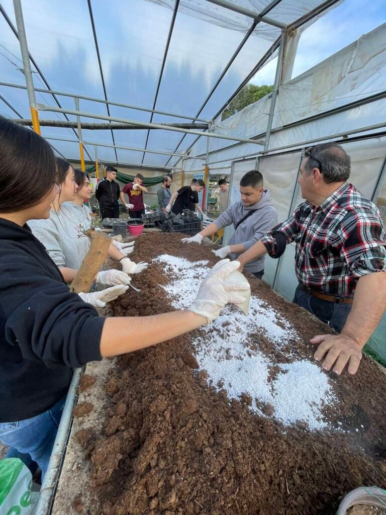Βήμα 4ον: Παράλληλα με την επεξεργασία των μοσχευμάτων, δημιουργήσαμε το κατάλληλο υπόστρωμα στο οποίο φυτέψαμε τα μοσχεύματα.