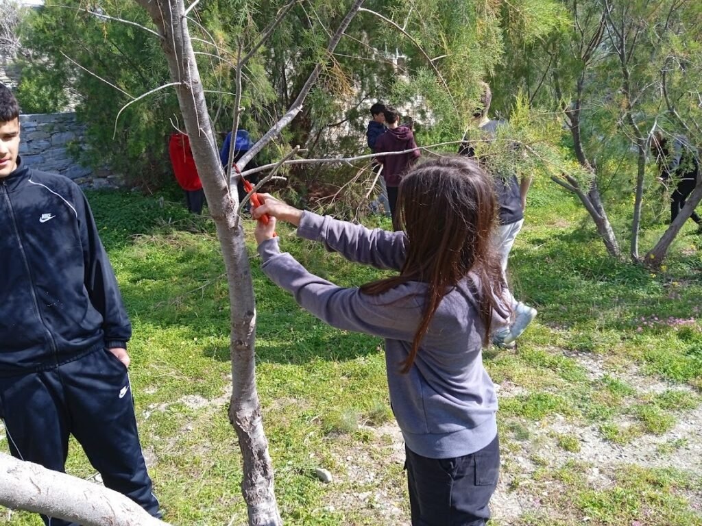 Την Τρίτη 21 Φεβρουαρίου 2023, οι μαθητές και οι μαθήτριες της Γ Τάξης του Γυμνασίου Τήνου, συνοδεία των καθηγητών τους, επισκέφτηκαν το αλσύλλιο αλμυρικιών στη θέση ΚΑΛΑΜΙΑ , εξωτερικό λιμάνι τα πόλης Τήνου, με σκοπό να μάθουν και να κλαδέψουν τα χαμηλά μέρη των δένδρων. Η επίσκεψη αυτή δεν ήταν τυχαία, αξίζει να σημειωθεί ότι το αλσύλλιο στα ΚΑΛΑΜΙΑ, είναι έργο της συνεργασίας του Γυμνασίου Τήνου με το Σύλλογο ΟΙ ΦΙΛΟΙ ΤΟΥ ΠΡΑΣΙΝΟΥ, δενδροφύτευση 2019.