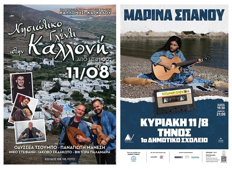 Η Τήνος γεμίζει ζωντάνια και κέφι την Κυριακή, 11 Αυγούστου, με δύο μοναδικές εκδηλώσεις που θα φέρουν τον κόσμο κοντά στη μουσική και τη διασκέδαση.