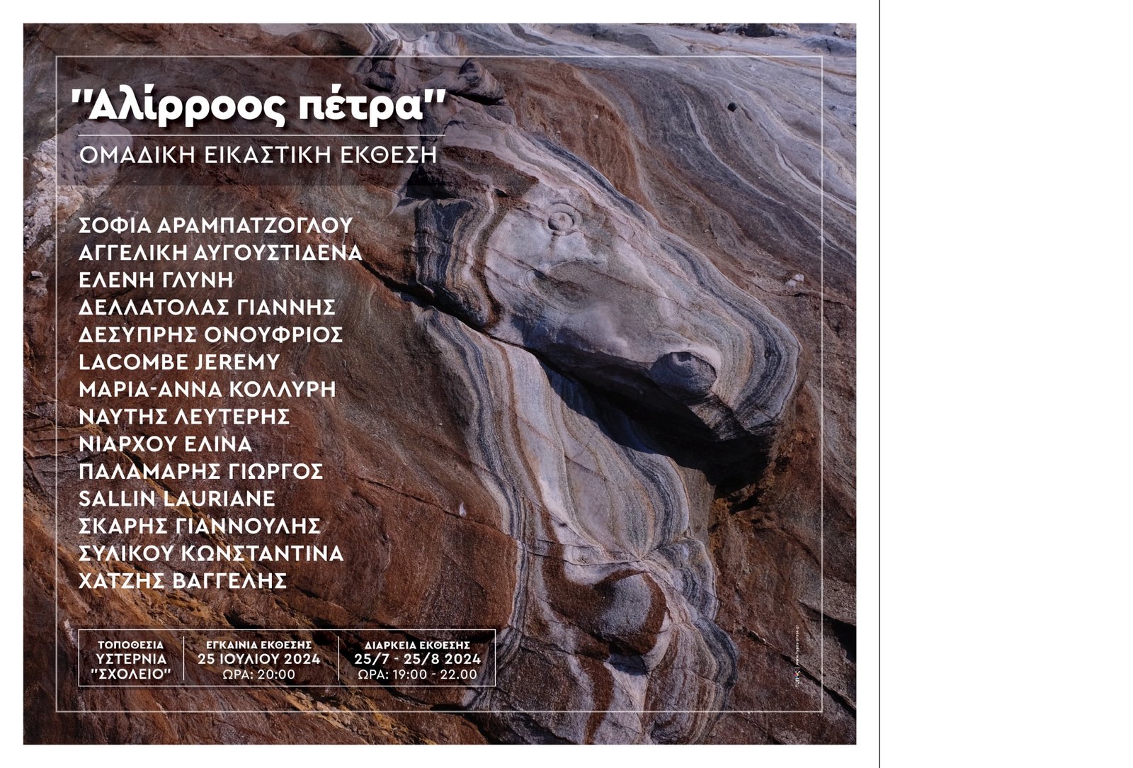 Ευχαριστούμε την τοπική Κοινότητα Υστερνίων και τον Δήμο Τήνου για την παραχώρηση του χώρου του πρώην Δημοτικού σχολείου Υστερνίων για την πραγματοποίηση της έκθεσης.