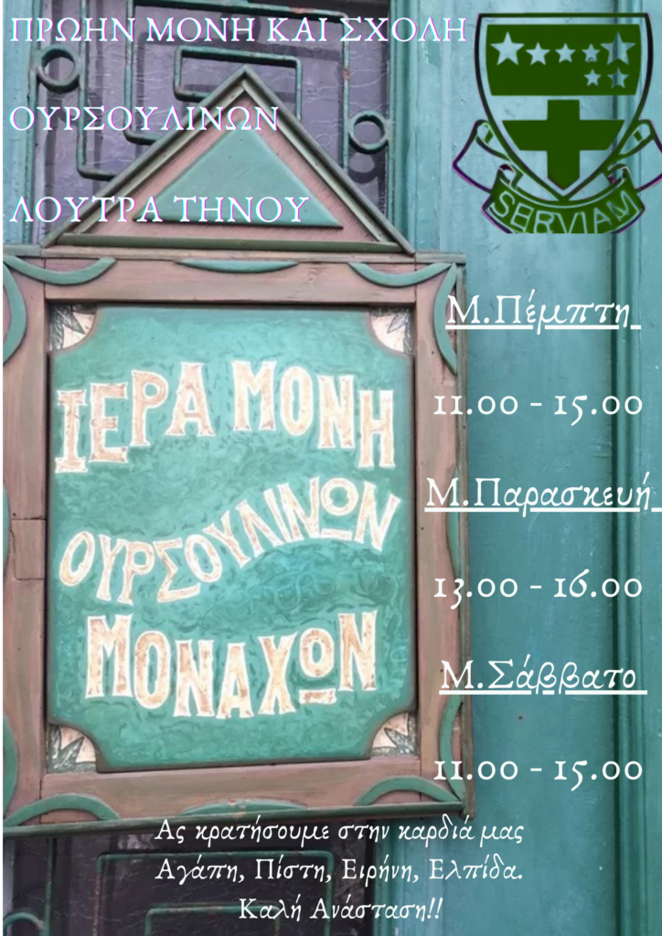 Ωράριo Λειτουργίας Πρώην Μονής Και Σχολής Ουρσουλινών Για Το Πάσχα 2024