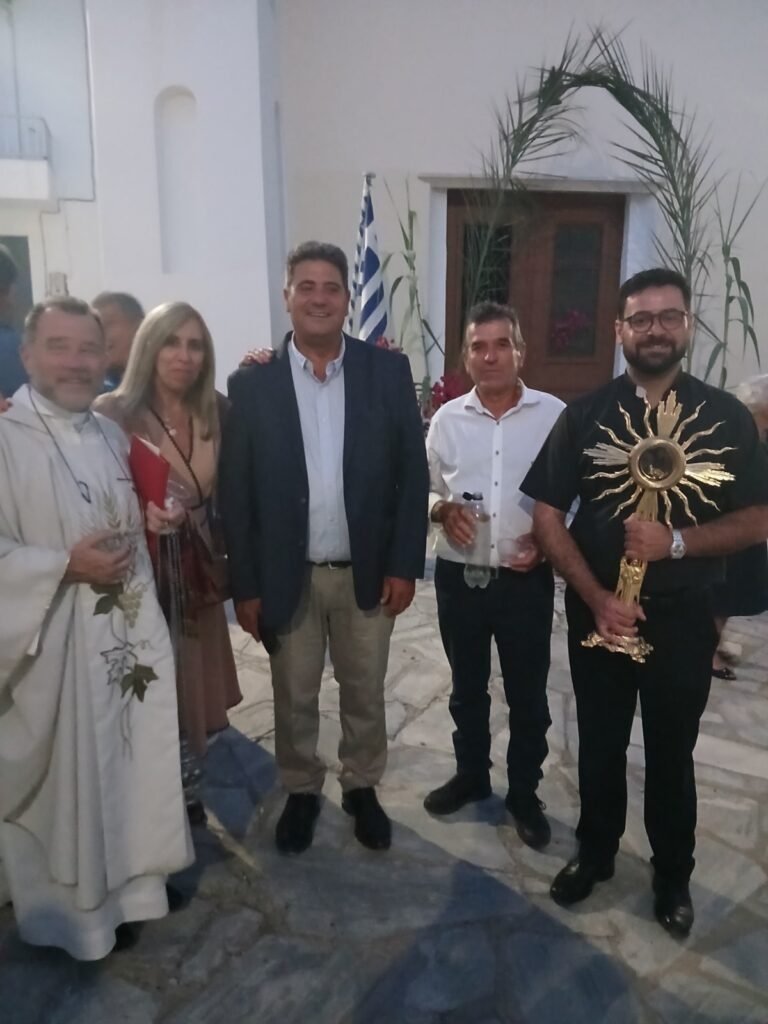 Τον εφημέριο της ενορίας μας π. Φραγκίσκο Βιδάλη συνέδραμε ο π. Γεώργιος Παλαμάρης, συμβάλλοντας με την παρουσία και τη λειτουργική του συμμετοχή στην πνευματική ατμόσφαιρα της ημέρας.