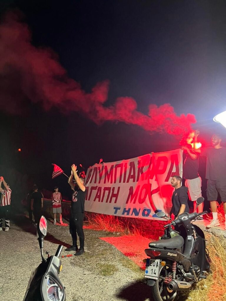 Πανηγυρισμοί των Φίλων του Ολυμπιακού στην Τήνο για την Ιστορική Κατάκτηση του Conference League (Φώτο)