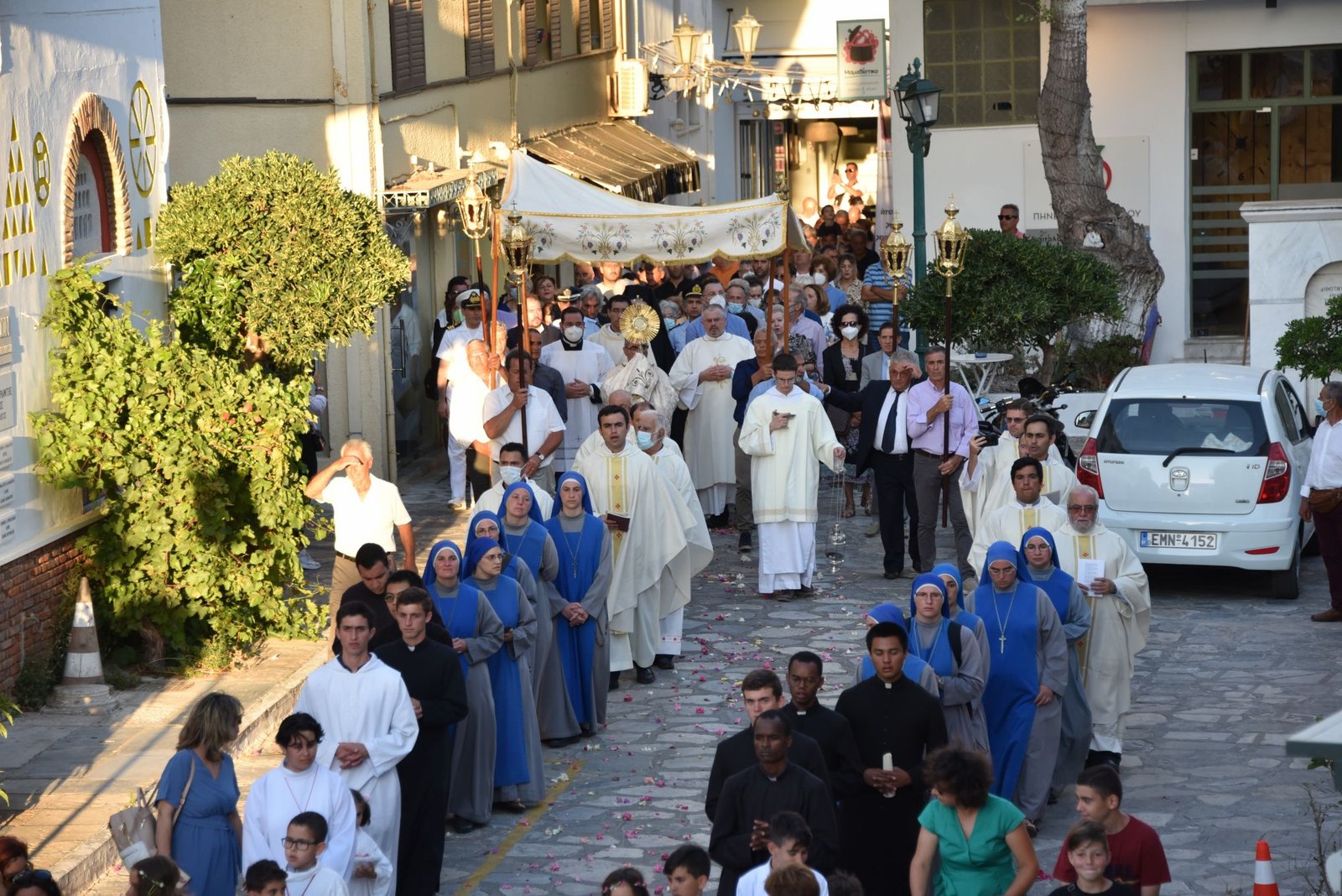 Ακολουθεί Λιτάνευση του Παναχράντου Μυστηρίου μέχρι το Ναό του Αγίου Αντωνίου στην Παλλάδα όπου θα δοθεί η ευλογία με αυτό.
