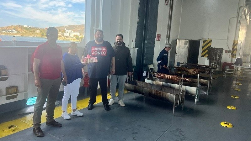 Την Κυριακή του Πάσχα 20 Απριλίου 2025, όπως κάθε χρόνο, ο πρόεδρος κ. Ανδρέας Τσιμέκης, η ταμίας κ. Πετρίνα Κολλάρου και ο ειδικός γραμματέας κ. Βαγγέλης Ζαλώνης του Εμποροεπαγγελματικού & Βιοτεχνικού Συλλόγου Τήνου επισκέφτηκαν και πρόσφεραν παραδοσιακά γλυκά τυροπιτάκια στους καπετάνιους και στα μέλη των πληρωμάτων του ΘΕΟΛΟΓΟΣ Π. της FAST FERRIES και του SUPER EXPRESS της GOLDEN STAR FERRIES.