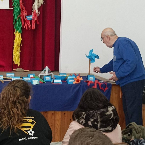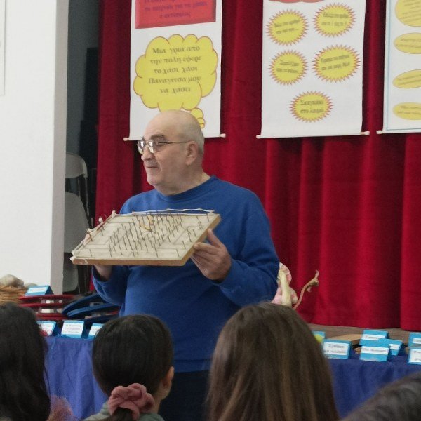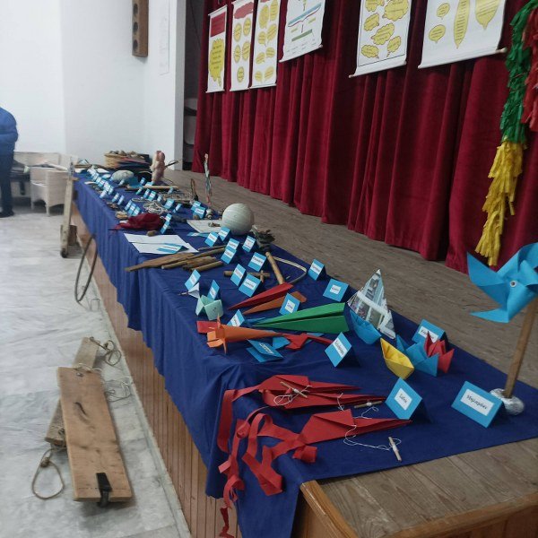 Παραδοσιακά παιχνίδια κάθε είδους από σβούρες, βόλους, σαΐτες, πάνινες μπάλες μέχρι και ξύλινο πατίνι παρουσιάστηκαν από τον κ. Σολάρη στους μαθητές που παρακολουθούσαν με προσοχή και θαυμασμό.
