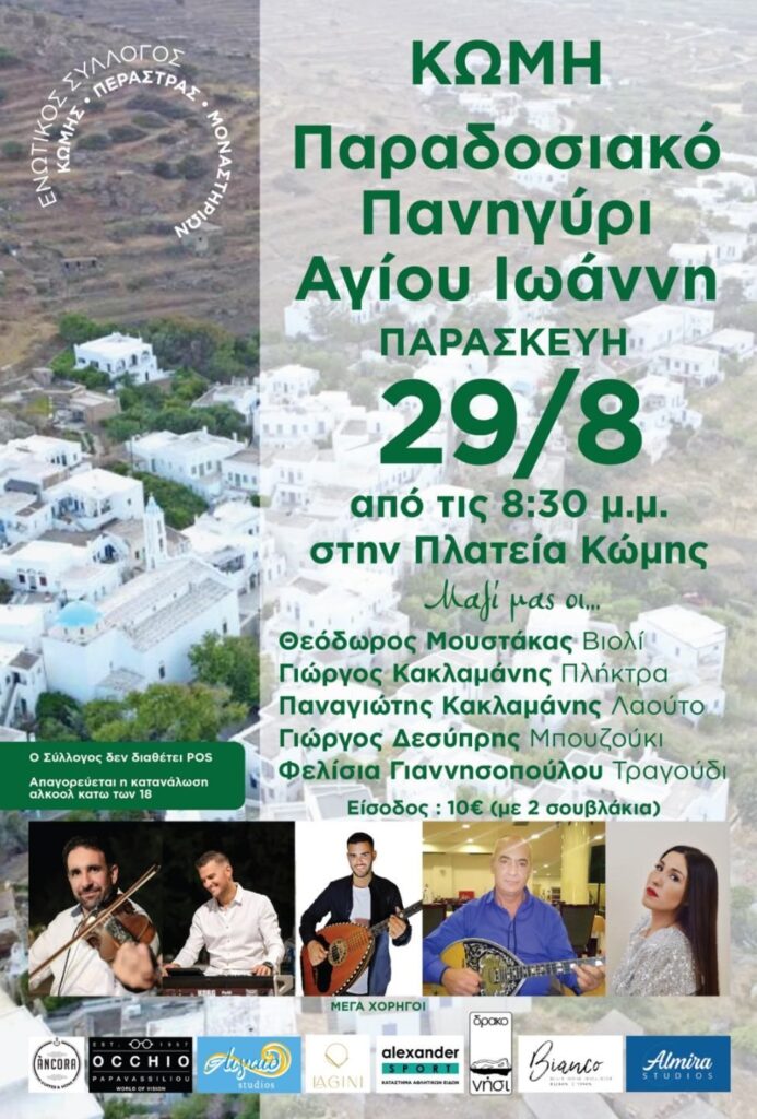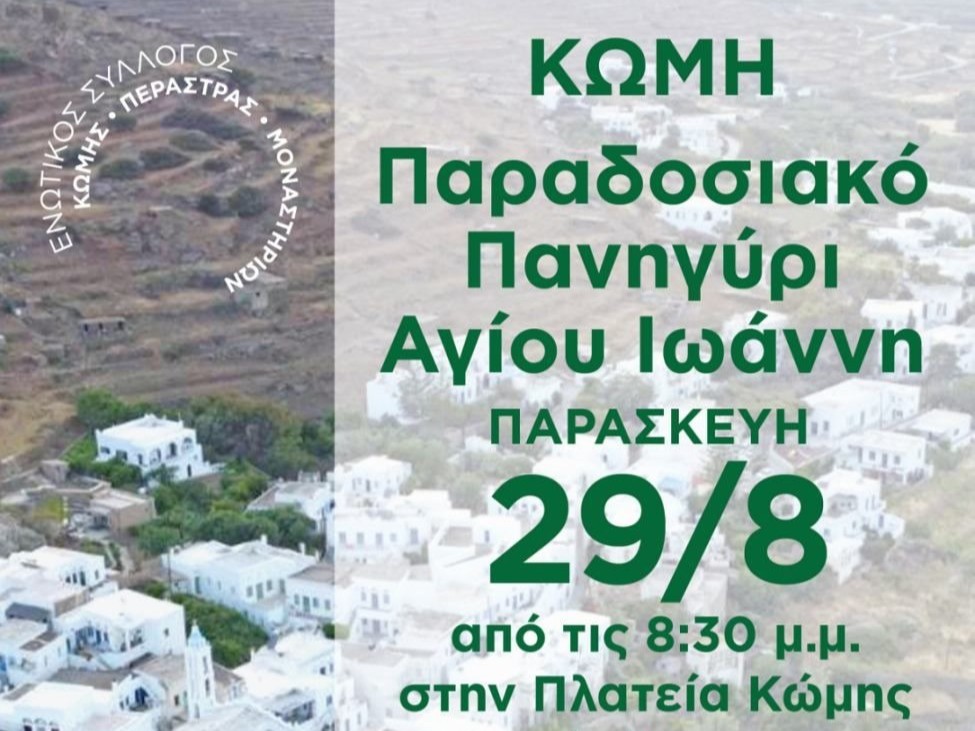 Παραδοσιακό Πανηγύρι Αγίου Ιωάννη στο χωριό Κώμη Τήνου