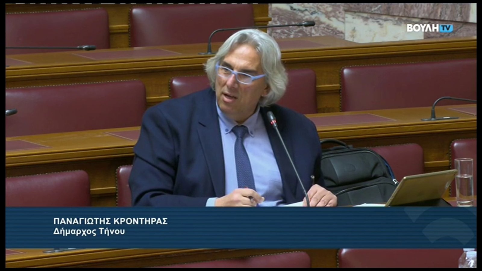 Ενώπιον της Διαρκούς Επιτροπής Μορφωτικών Υποθέσεων της Βουλής των Ελλήνων, παρευρέθηκε χθες ο Δήμαρχος Τήνου Παναγιώτης Κροντηράς, στο πλαίσιο ακρόασης φορέων, επί νομοσχεδίου του Υπουργείου Πολιτισμού.