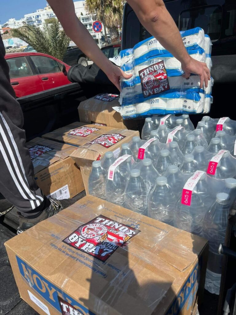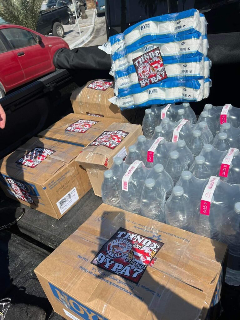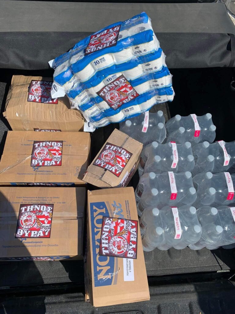 Ο σύνδεσμος θύρα 7 ΤΗΝΟΥ κοντά στους πλημμυροπαθείς της Θεσσαλίας στηρίζοντας τους με τρόφιμα, είδη υγιεινής και νερά.