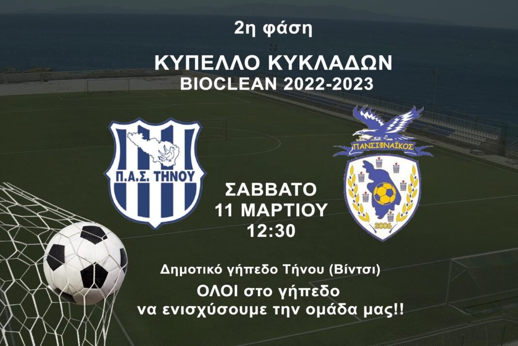 Ο Π.Α.Σ. ΤΗΝΟΥ αντιμετωπίζει στα πλαίσια της 2η φάσης κυπέλλου Κυκλάδων Bioclean 2022-2023 τον Πανσιφναϊκός.