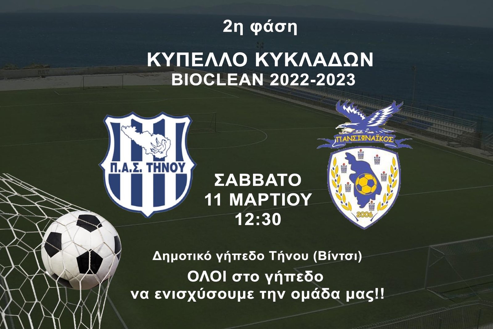 Σάββατο 11/03/23 στις 12:30 στο Δημοτικό Γήπεδο Τήνου (Βίντσι).