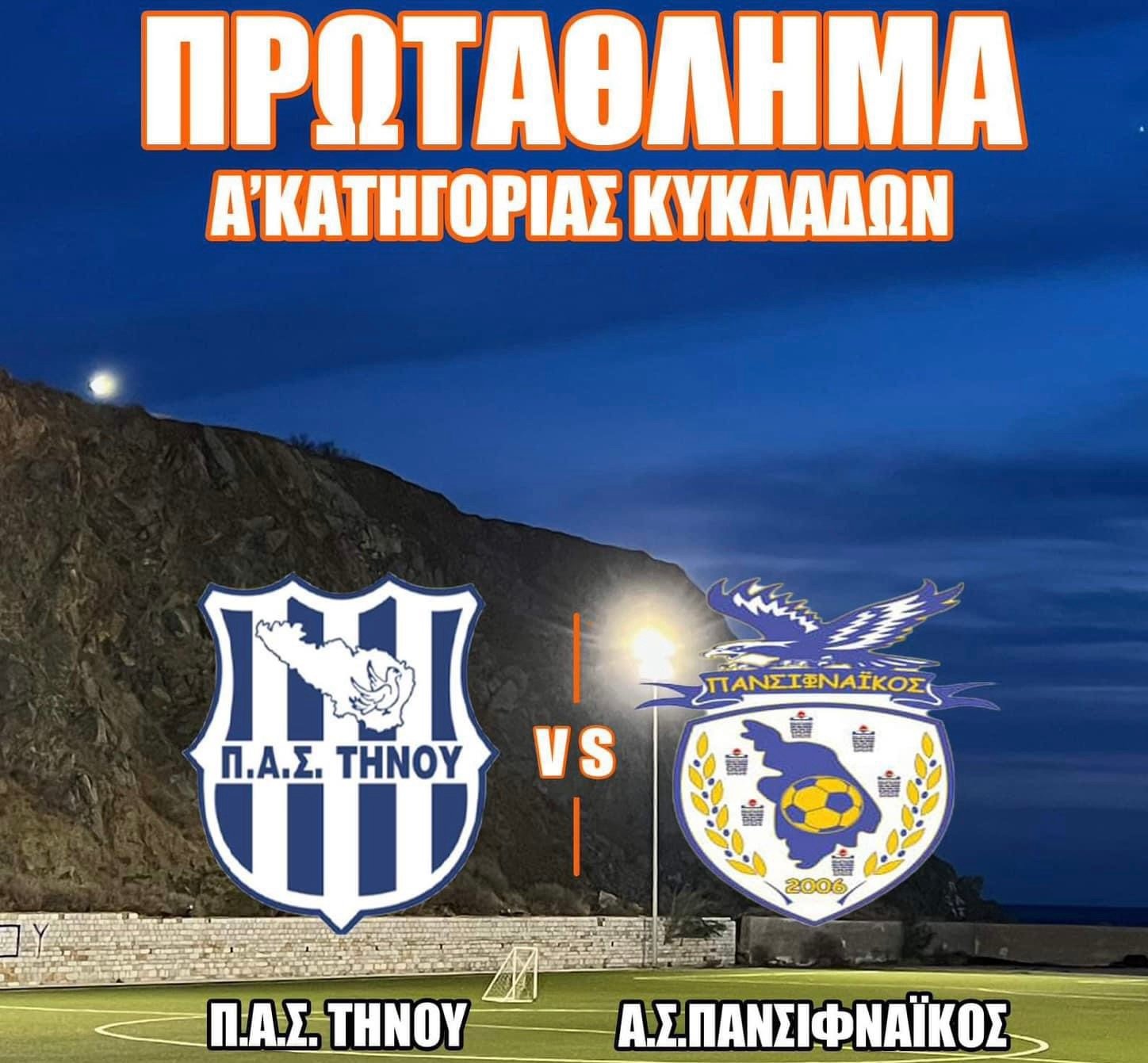 Η ομάδα του ΠΑΣ Τήνου αντιμετωπίζει τον ΑΣ Πανσιφναϊκό στο πλαίσιο του Πρωταθλήματος Α’ Κατηγορίας Κυκλάδων, το Σάββατο 12 Οκτωβρίου 2024 και ώρα 13:00 στο γήπεδο της Τήνου (Βίντσι). Οι φίλοι της ομάδας καλούνται να γεμίσουν το γήπεδο και να ενισχύσουν τους παίκτες στη σημαντική αυτή αναμέτρηση.