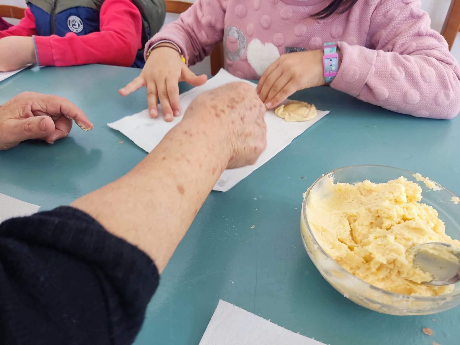 Αλεύρι, ζάχαρη, πέτρωμα, μαστίχα, αυγά και πορτοκάλι “κρύφτηκαν” στην πλατεία και στο μπακάλικο και αφού τα παιδιά τα βρήκαν συγκεντρωθήκαμε στο παλιό σχολείο μας. Φτιάξανε τη γέμιση, το ζυμάρι και τσίμπησαν τις δικιές τους τυρόπιτες.
