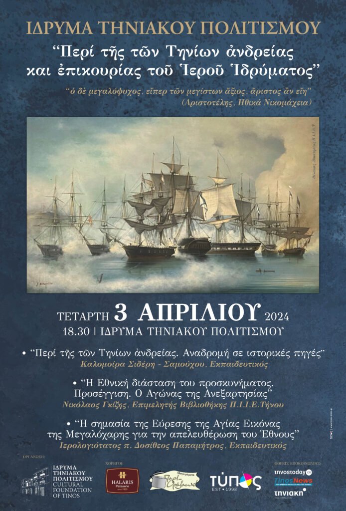 Την Τετάρτη 3 Απριλίου 2024 στις 18:30 στο Ίδρυμα Τηνιακού Πολιτισμού