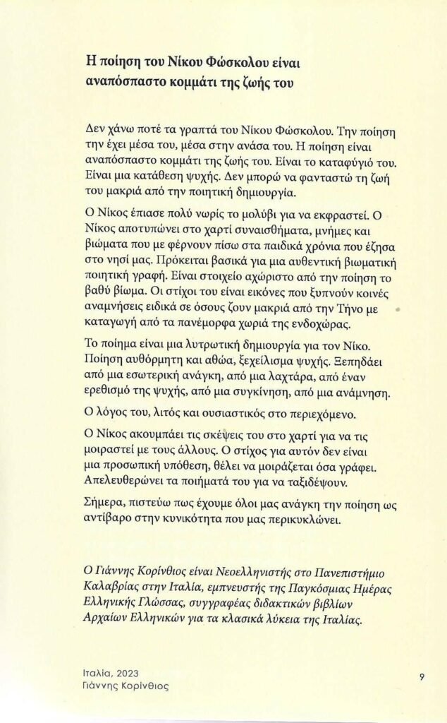 Η ποίηση του Νίκου Φώσκολου είναι αναπόσπαστο κομμάτι της ζωής του