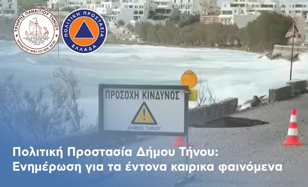 Πολιτική Προστασία Δήμου Τήνου – Ενημέρωση για τα έντονα καιρικά φαινόμενα που επικρατούν στο νησί