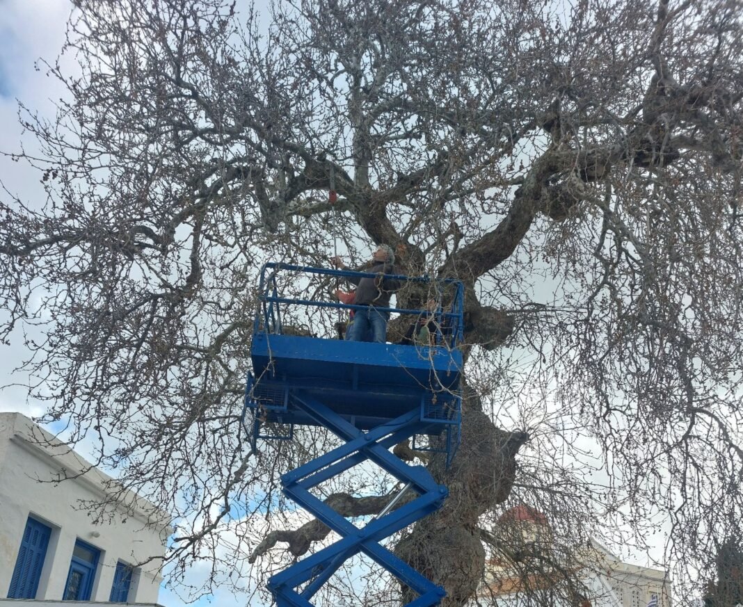 Πραγματοποιήθηκε το κλάδεμα στον πλάτανο του Πύργου Τήνου