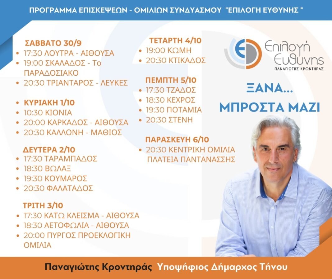 ΠΡΟΓΡΑΜΜΑ επισκέψεων – ομιλιών Συνδυασμού “Επιλογή Ευθύνης” στα χωριά και κεντρικές ομιλίες σε Πύργο και Χώρα