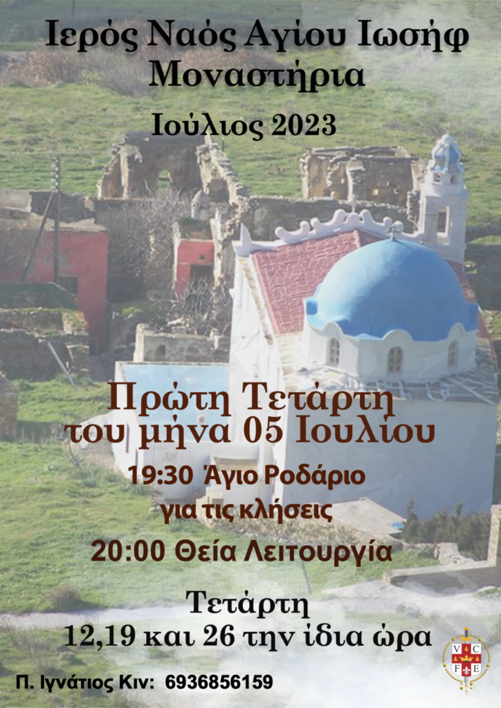 Ιερός Ναός του Αγίου Ιωσήφ στα Μοναστήρια – Ιούλιος 2023