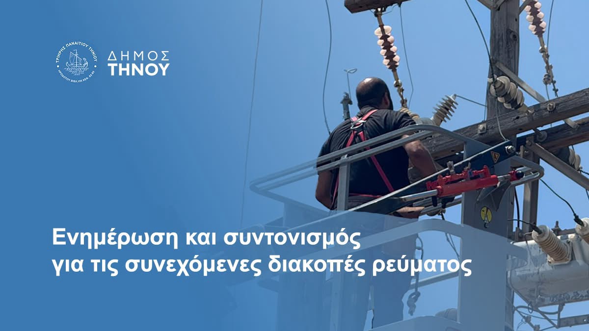 Με αφορμή τις συνεχιζόμενες διακοπές ηλεκτροδότησης στο νησί μας, με αποτέλεσμα να προκαλούνται συνεχείς και πολύωρες διακοπές υδροδότησης σε μεγάλες περιοχές και για μεγάλα χρονικά διαστήματα, την δυσφορία η οποία έχει ήδη προκληθεί και συνεχίζει να προκαλείται στους κατοίκους αλλά και στους επισκέπτες – παραθεριστές, μεσούσης μάλιστα της τουριστικής περιόδου και με δύσκολες κλιματολογικές συνθήκες, αλλά και με την όποια οικονομική ανησυχία προκαλεί αυτή η κατάσταση, σας προσκαλούμε, σήμερα Δευτέρα 28 Ιουλίου 2025, ώρα 20:30, στην Αίθουσα Συνεδριάσεων του Δημοτικού Συμβουλίου του Δήμου Τήνου, στην Χώρα Τήνου, για ενημέρωση σχετικά με τις ενέργειες που έχουν γίνει, και τον συντονισμό των κινήσεων μας για την αντιμετώπιση της ιδιάζουσας κατάστασης και των προβλημάτων τα οποία προκαλούνται.