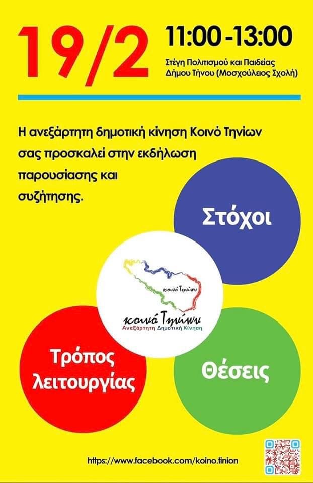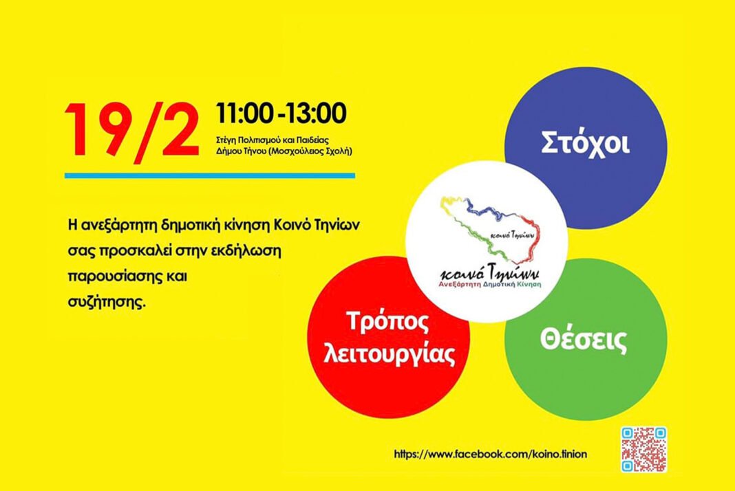Πρόσκληση στην εκδήλωση παρουσίασης και συζήτησης από το Κοινό Τηνίων