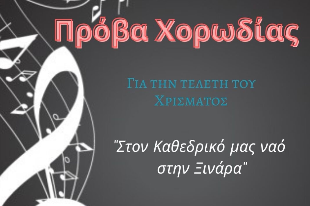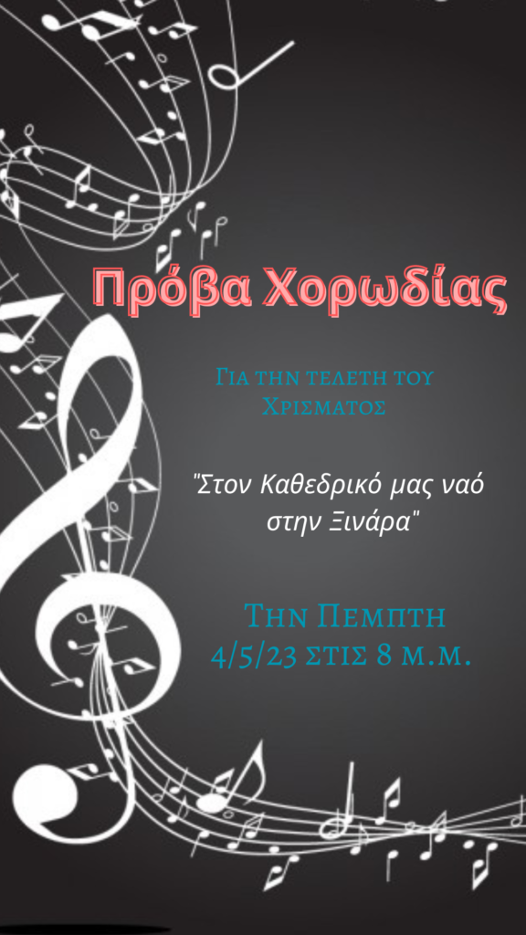 Πρόσκληση για Πρόβα της Χορωδίας, για την τελετή του Χρίσματος “Στον Καθεδρικό μας Ναό στη Ξινάρα” την Πέμπτη, 04/05/2023 στις 8:00 μ.μ.