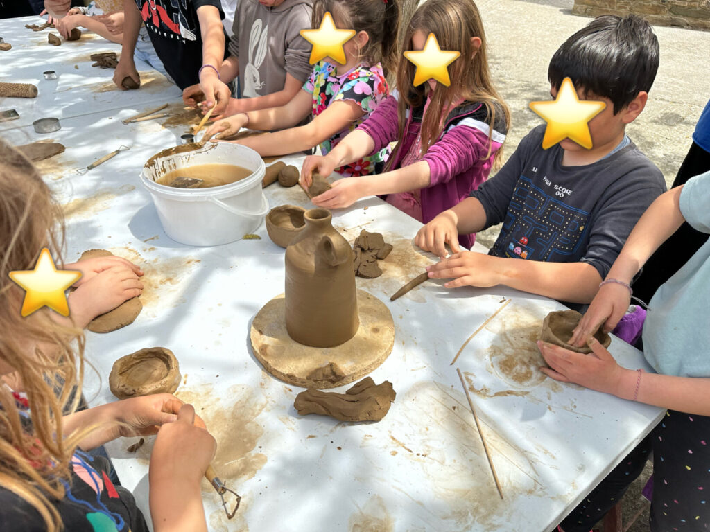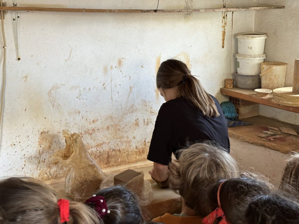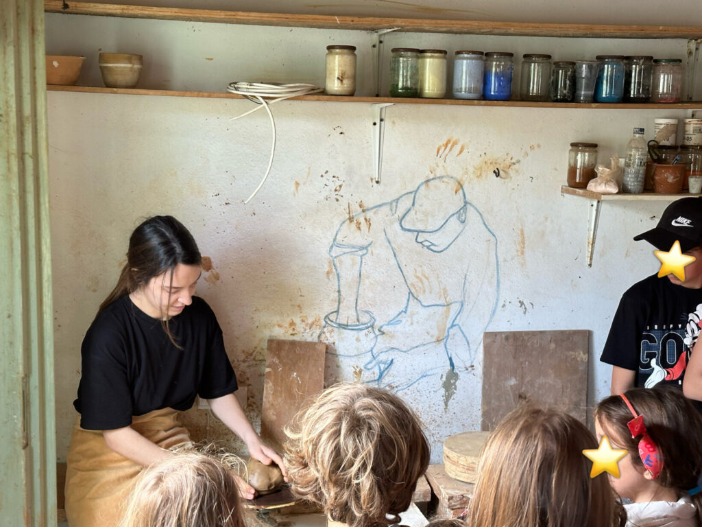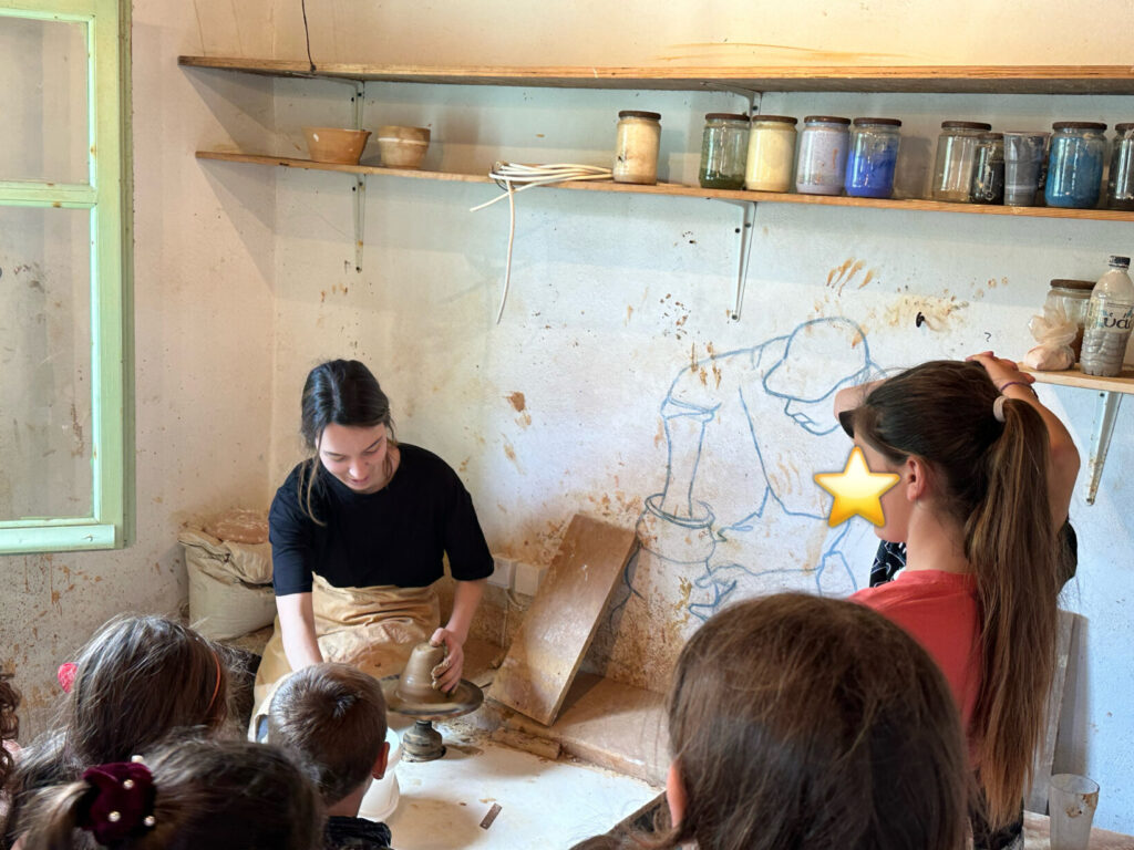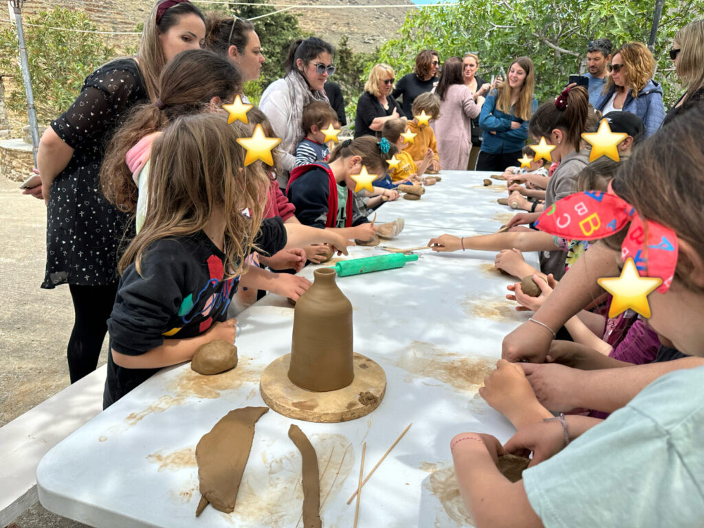 Σύμφωνα με την παράδοση, καλλιτέχνες κεραμικής από τη Σίφνο εγκαταστάθηκαν πριν χρόνια στο χωριό. Ένας από αυτούς, που διατηρεί την παράδοση της κεραμικής, ο παλιός κεραμοποιός Γιάννης Εξιλζές, μίλησε στους μαθητές μας για την τέχνη της κεραμικής και την ιστορία της. Επιπλέον, η εγγονή του κ. Γιάννη, Άννα Εξιλζέ, έδειξε στους μαθητές μας διάφορες παραδοσιακές αλλά και πιο σύγχρονες τεχνικές κατασκευής κεραμικών και στο τέλος της παρουσίασης οι μαθητές μας έφτιαξαν οι ίδιοι τα δικά τους αντικείμενα από πηλό.