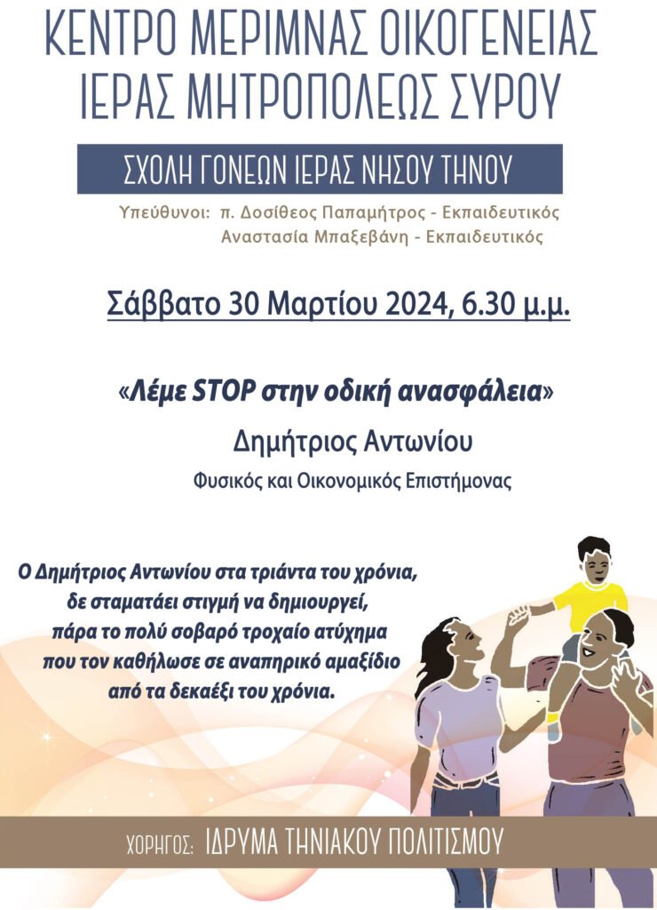 Σχολή Γονέων Ιεράς νήσου Τήνου – εκδήλωση με θέμα: Λέμε STOP στην οδική ανασφάλεια