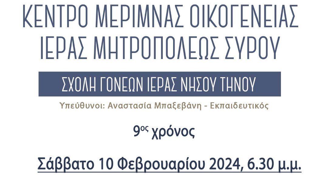 Σχολή Γονέων Ιεράς Νήσου Τήνου – εκδήλωση με θέμα «Το δικαίωμα στο ελεύθερο χρόνο, το δικαίωμα να είσαι παιδί»