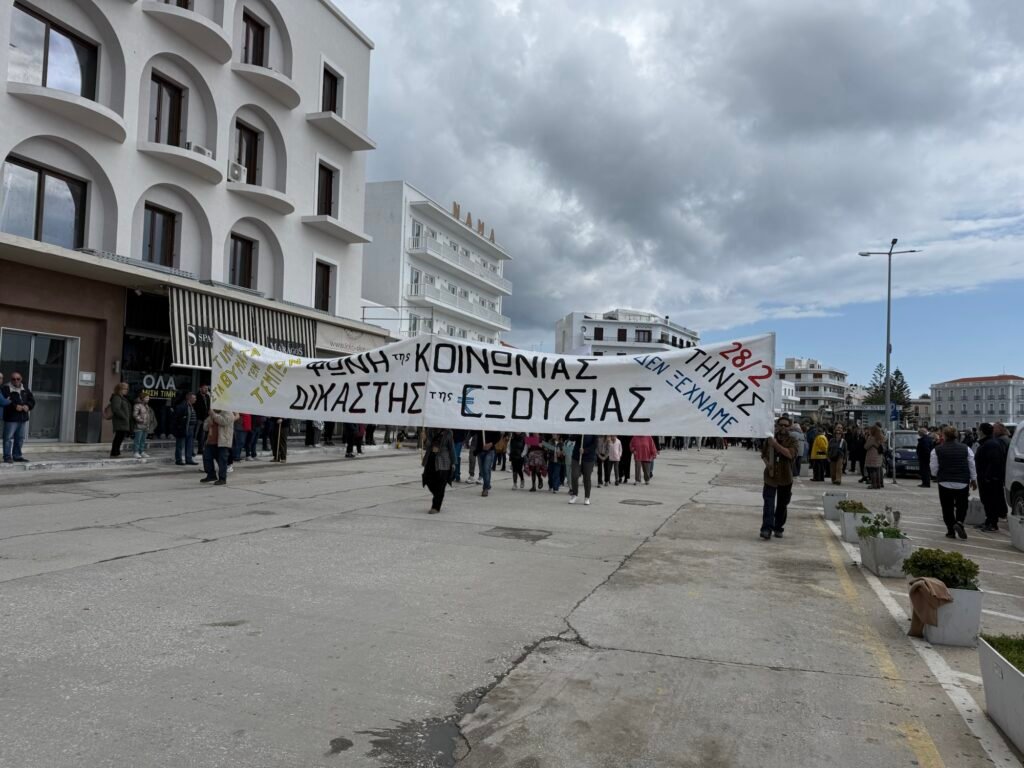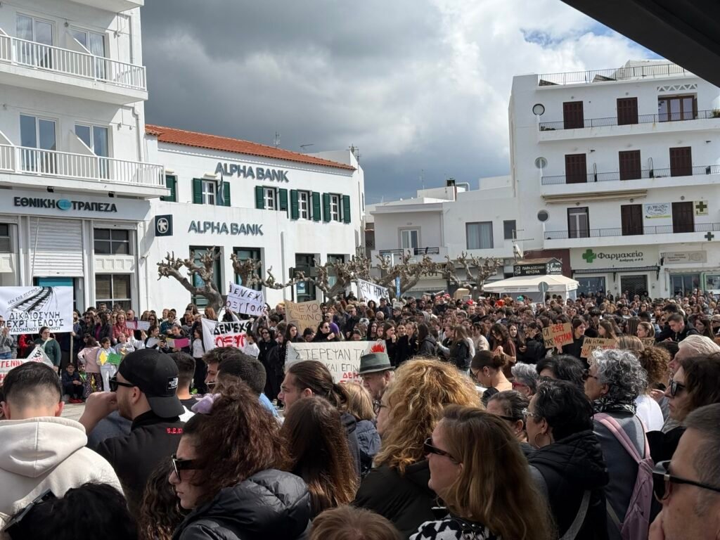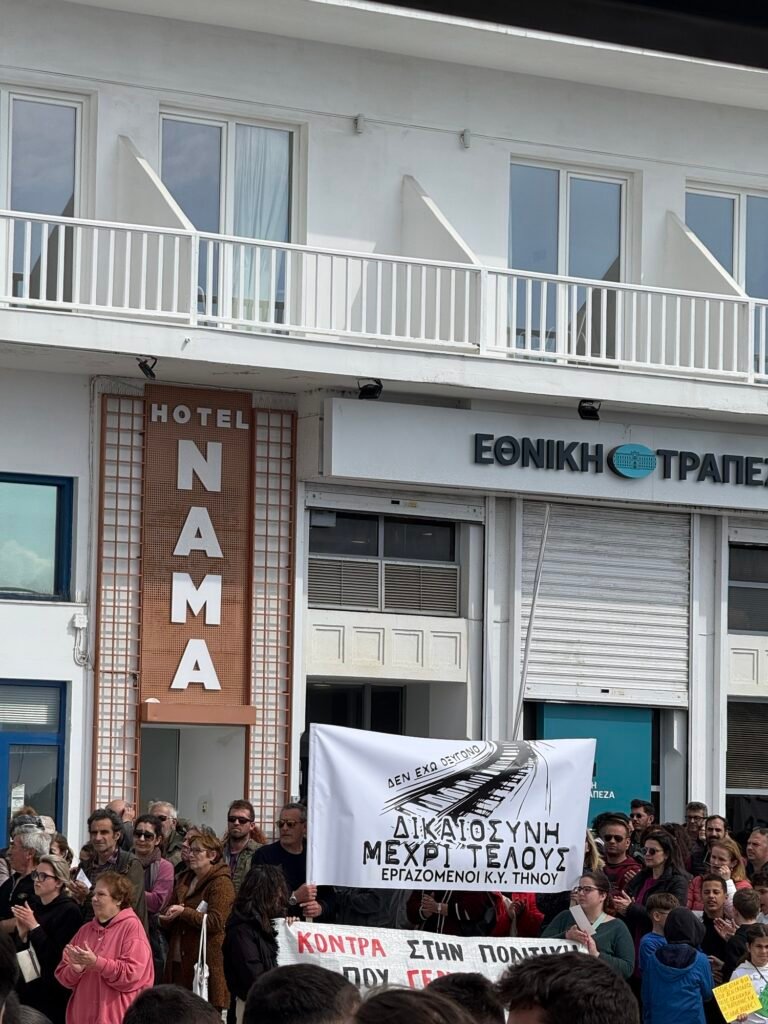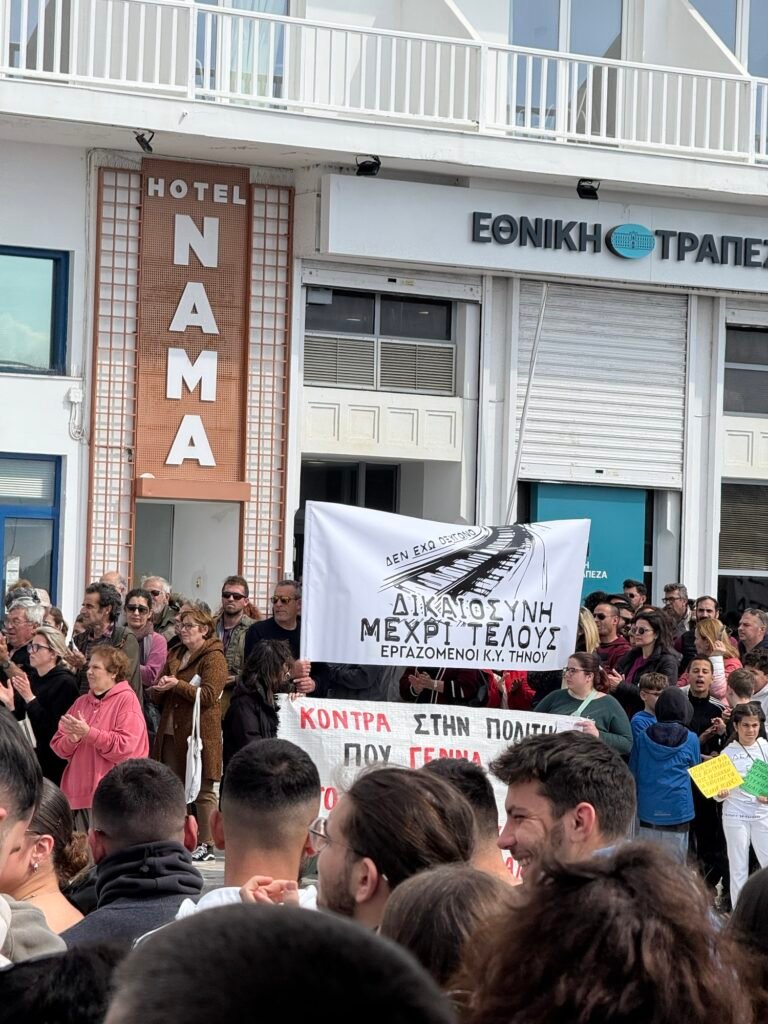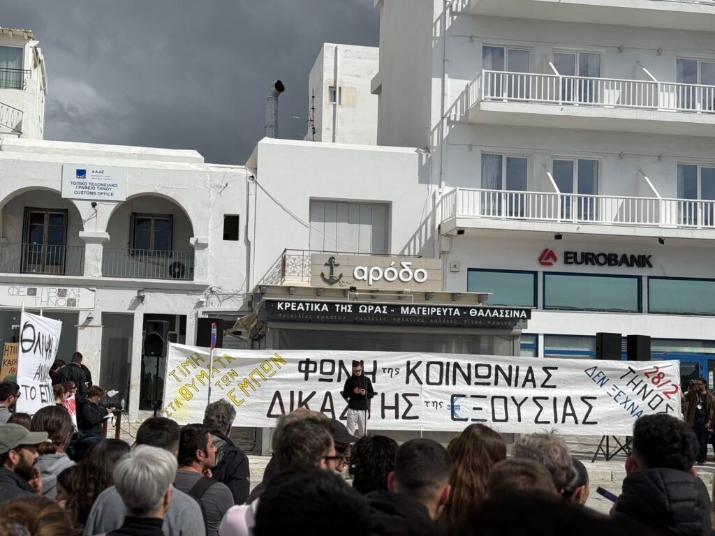Σήμερα, Παρασκευή 28 Φεβρουαρίου, ανήμερα της επετείου της τραγωδίας των Τεμπών, πλήθος κόσμου συγκεντρώθηκε στην παραλία της Τήνου, απαιτώντας δικαιοσύνη. Με σύνθημα «Δεν έχω οξυγόνο – Μέχρι τέλους», οι διαδηλωτές δήλωσαν πως δεν θα αφήσουν το έγκλημα να ξεχαστεί.