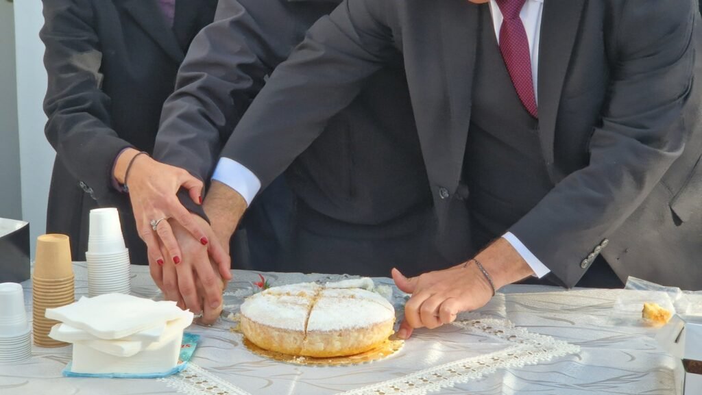 Μιας και ο καιρός ήταν εξαιρετικός η κοπή έγινε στον χώρο της πλατείας.