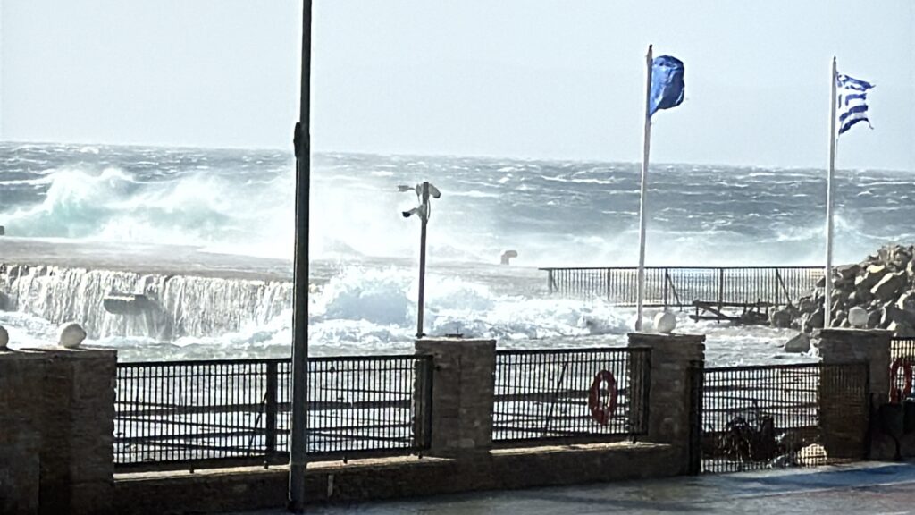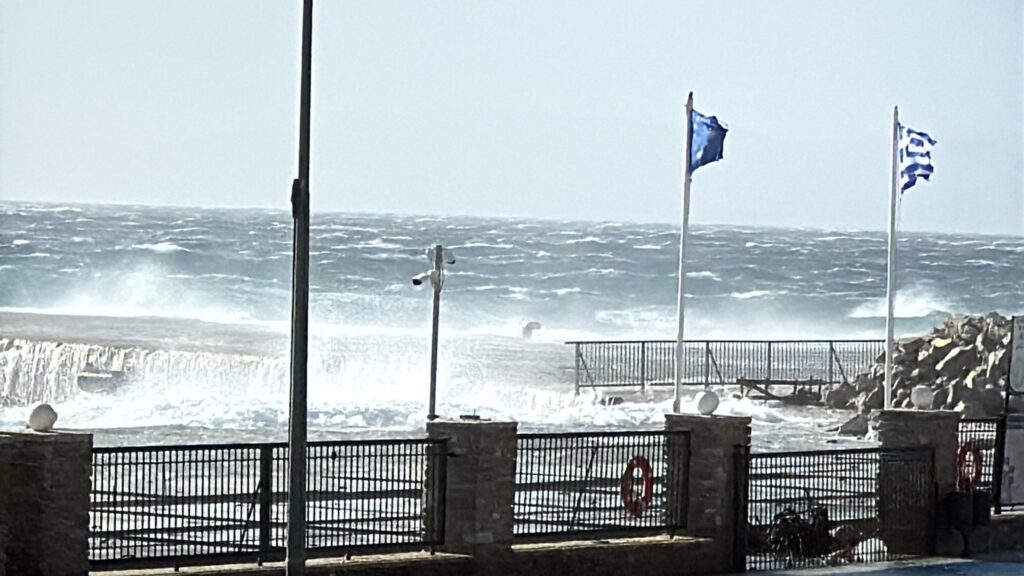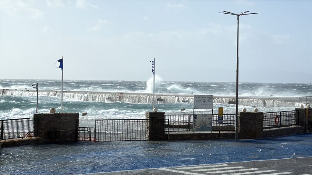 📹 Δείτε στα βίντεο και τις φωτογραφίες την ένταση της θαλασσοταραχής στο λιμάνι της Τήνου.
