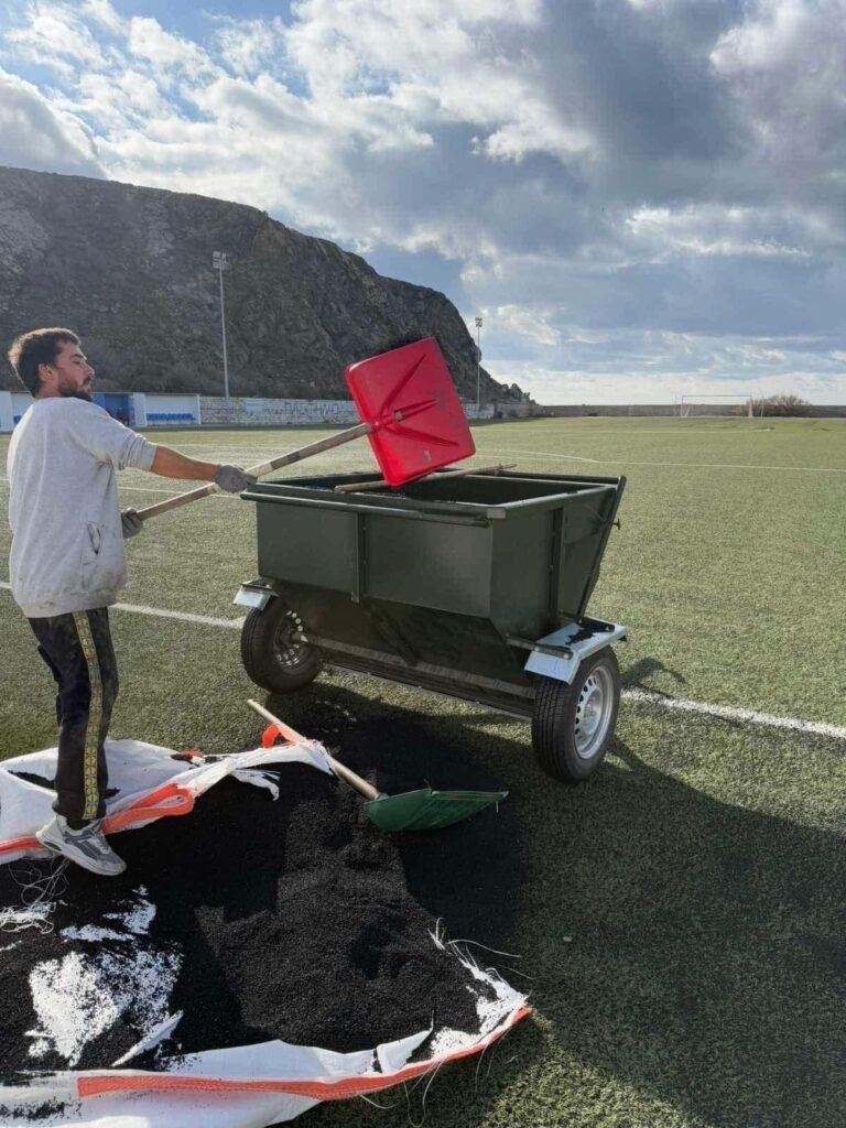 - Συντήρηση του συνθετικού χλοοτάπητα, με χτένισμα της επιφάνειας και ομοιογενοποίηση της κατανομής των κόκκων καουτσούκ.