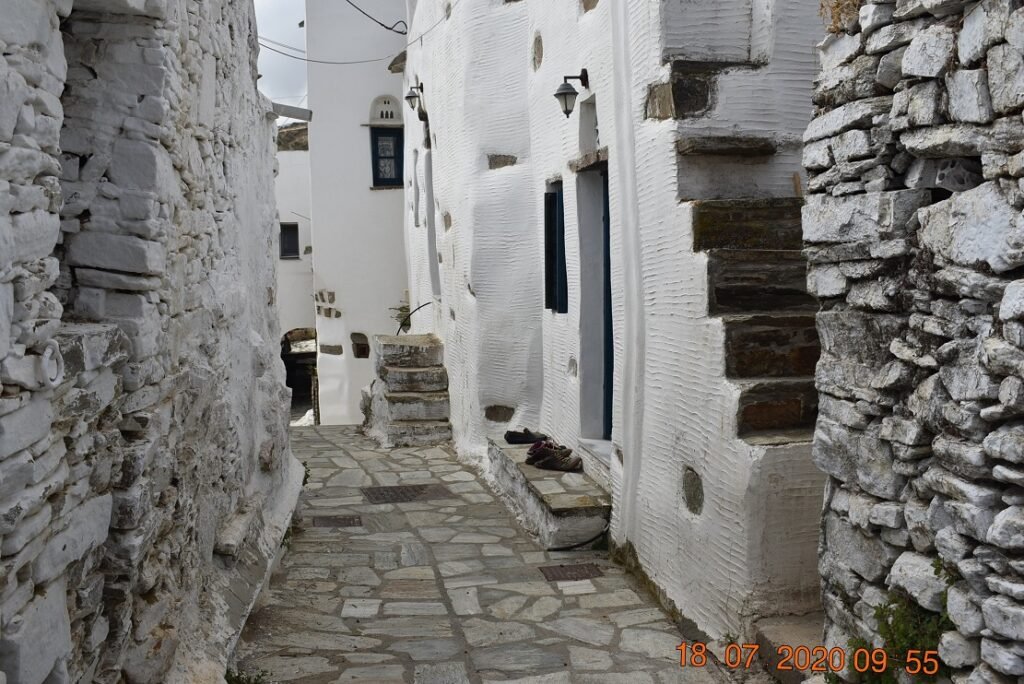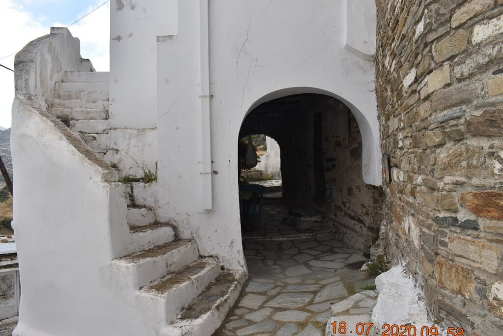 Συναντήσαμε εποχικούς κατοίκους που με περισσή ευγένεια και την παραδοσιακή φιλοξενία των Τηνιακών, μας υποδέχτηκαν στο ανακαινισμένο σπιτικό τους, που παράλληλα με τη χρήση του ως κατοικία, το έχουν διαμορφώσει και ως μουσειακό λαογραφικό χώρο, εκθέτοντας αντίστοιχα σκεύη και εργαλεία που κυρίως χρησιμοποιούσαν παλιότερες εποχές στο χωριό και στην Τήνο.