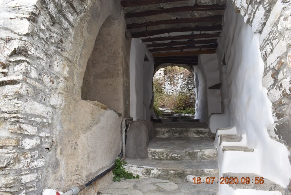 Ο επιμήκης δρόμος του χωριού οδηγεί μέσα από καμάρες και σοκάκια στην πλατεία με το πλυσταριό και το πηγάδι – βρύση. Στη διαδρομή υπάρχουν και κάποια κάθετα δρομάκια, είτε μέσα από καμάρες είτε ξέσκεπα που φτιάχνουν μια μικρή γειτονιά.