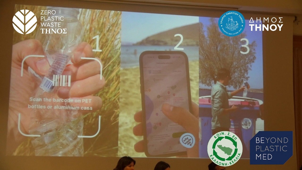 Πρόκειται για το δίκτυο ανακύκλωσης Whywasteme, με περισσότερα από 70 σημεία σε όλη την Τήνο.