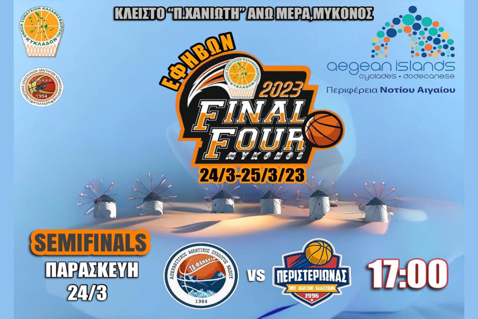 συναντιούνται ως επιστεγασμα των φετινών τους προσπαθειων με στόχο την κατακτηση του τιτλου του πρωταθλητη Κυκλαδων 2022/23 αλλά και την κοινη μπασκετικη συνυπαρξη των Κυκλαδων