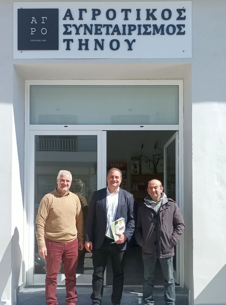 «Πρέπει να γίνουν καινοτόμες ενέργειες για την ανάπτυξη του πρωτογενούς τομέα κυρίως στα νησιά μας που καλούνται να αντιμετωπίσουν και τα προβλήματα της νησιωτικότητας..» σχολίασε ο κ. Πολυχρονάκος κατά την επίσκεψη του και στο κατάστημα του Αγροτικού Συνεταιρισμού Τήνου.