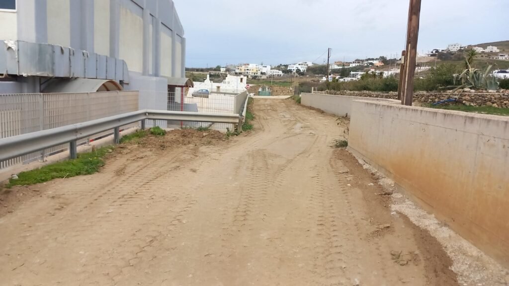 Στρώθηκε με χώμα ο δρόμος στο κλειστό γυμναστήριο Τήνου