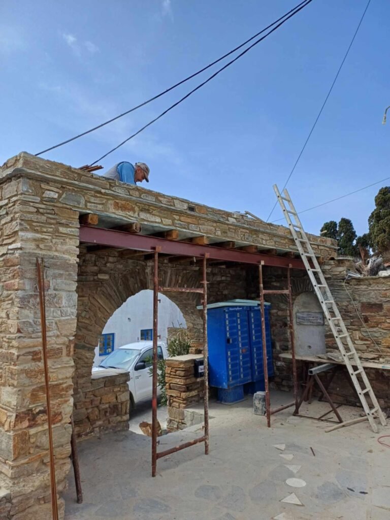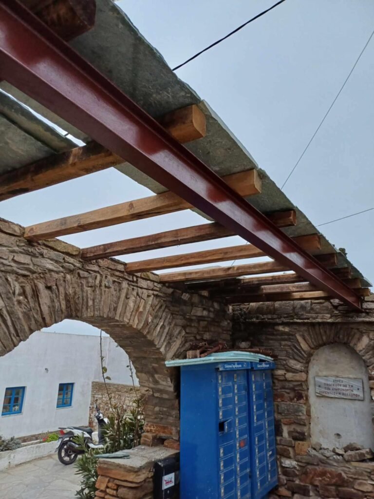 Ένα από τα πρόσφατα έργα του συλλόγου Φιλοπροόδων Φαλατάδου είναι η ανακατασκευή στέγης της εισόδου της κεντρικής πλατείας του χωριού μας. Συγκεκριμένα τοποθετήθηκαν παραδοσιακές τράβες, πλάκες πηλίου και προστέθηκε ένα χτιστό πέτρινο ξωγύρι περιμετρικά της πλάκας.