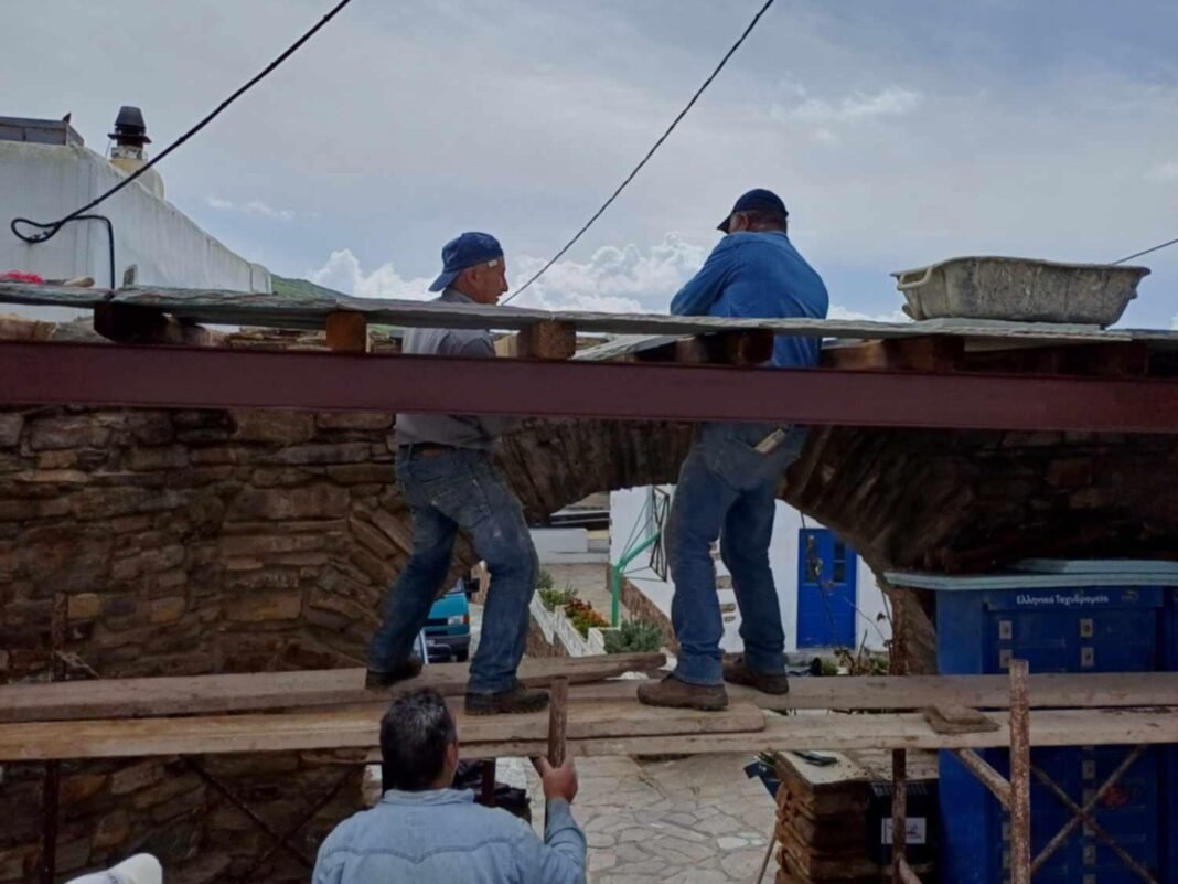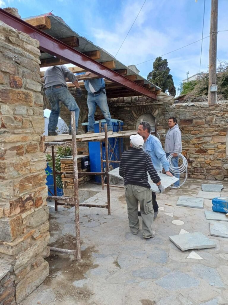 Το συγκεκριμένο έργο ανατέθηκε στον τεχνίτη Νίκο Αλβέρτη και το συνεργείο του τους οποίους και ευχαριστούμε θερμά! Είναι σημαντικό να αναφέρουμε η πραγματοποίηση της πλατείας του χωριού είναι έργο εξ ολοκλήρου του συλλόγου Απανταχού Φαλαταδιανών (Σύλλογος των Απανταχού Φαλαταδιανών Τήνου). Στο πλαίσιο της καλής συνεργασίας των συλλόγων, μεταξύ άλλων, έγινε και η συγκεκριμένη ενέργεια.