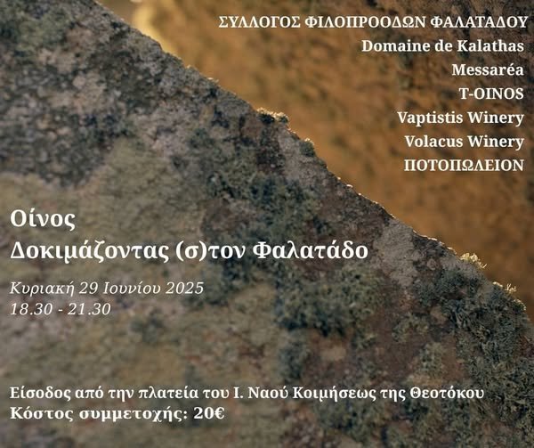 Μια συνεργασία για την διοργάνωση και πραγματοποίηση ενός απογεύματος γευσιγνωσίας κρασιών της περιοχής του Φαλατάδου, κατά μήκος του χωριού.