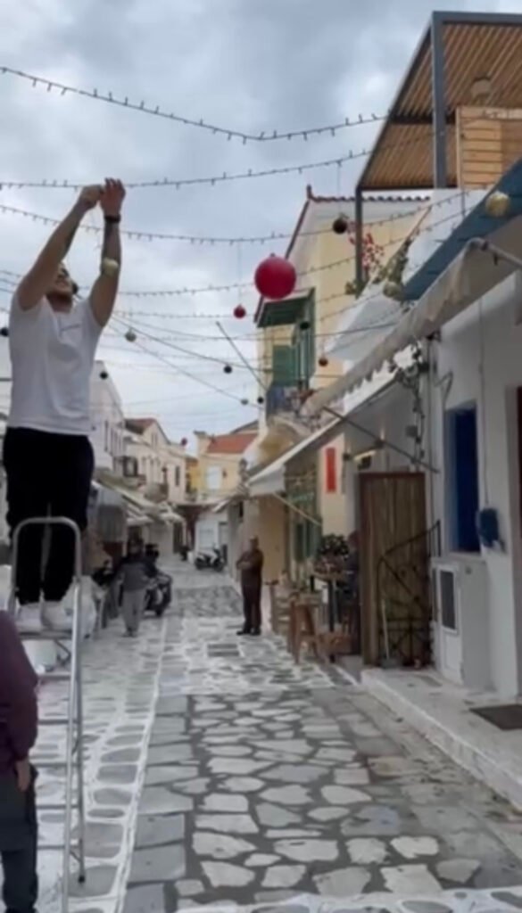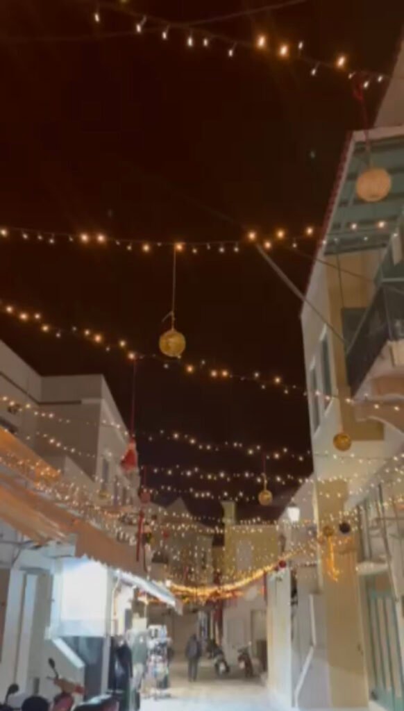 Γιορτινό το κλίμα στην πόλη της Τήνου, καθώς συνεχίζεται ο στολισμός για τα Χριστούγεννα όσο πλησιάζουμε στην εορταστική περίοδο.