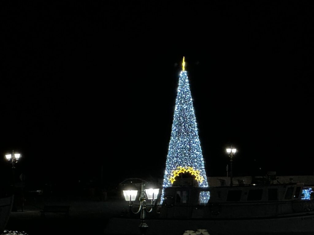 Επίσης εχθές το συνεργείο του Δήμου άναψε το Χριστουγεννιάτικο δέντρο στην παραλία του νησιού σηματοδοτώντας το εορταστικό κλίμα.