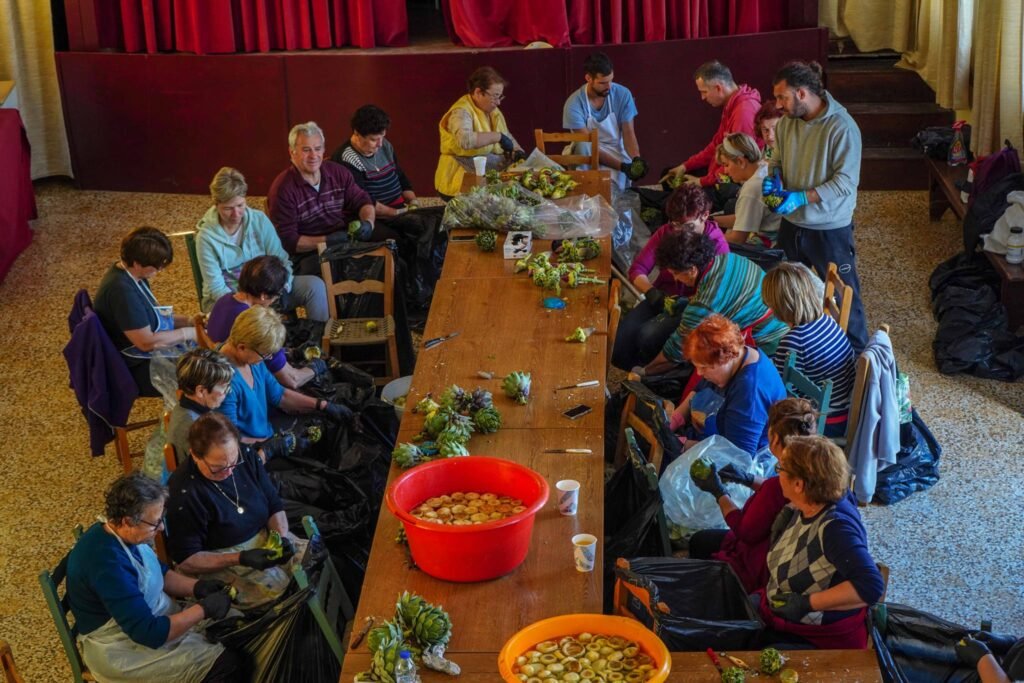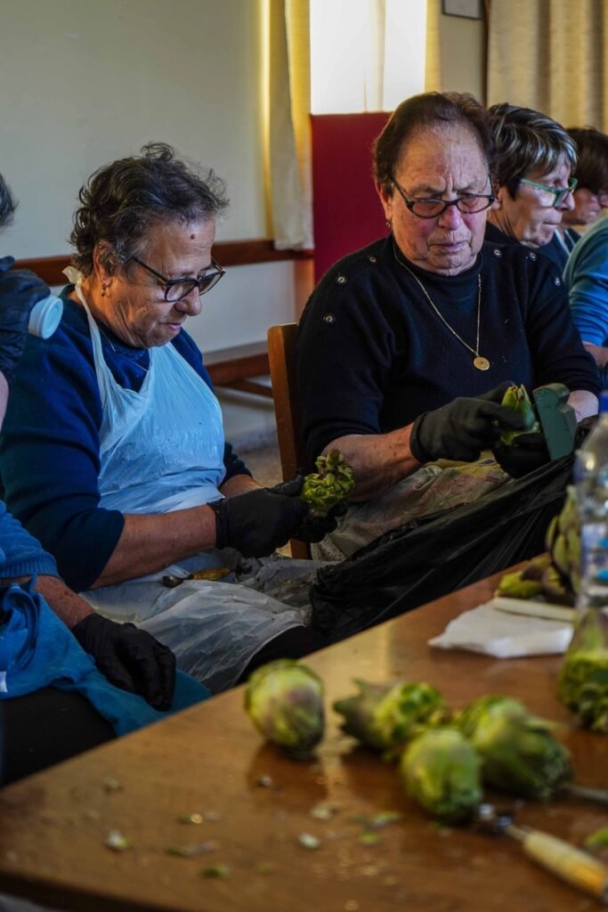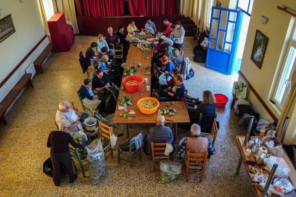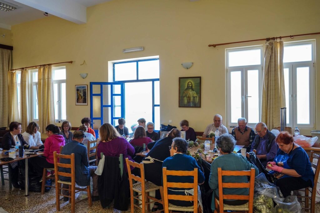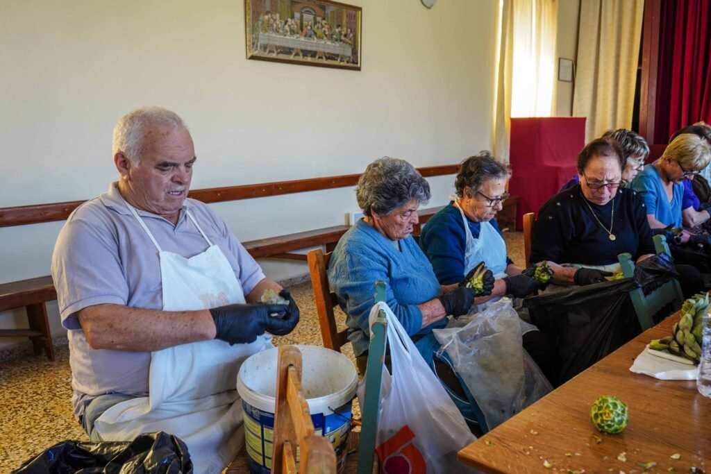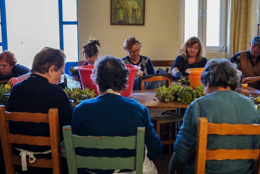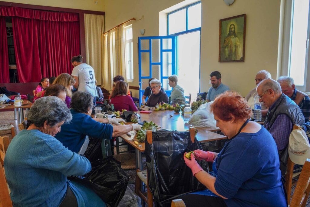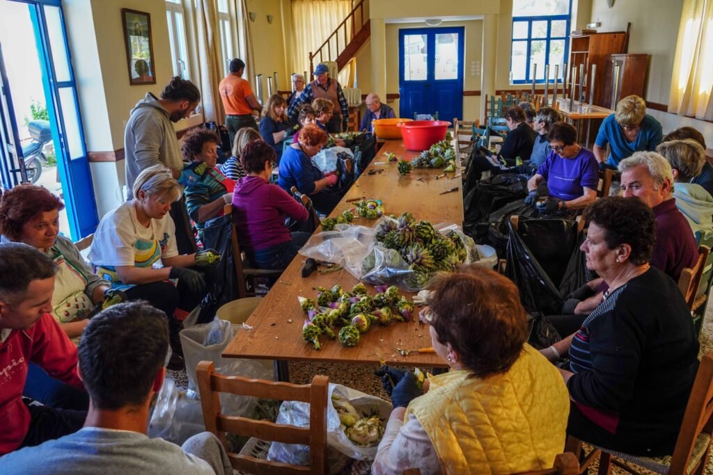 Χθές Σάββατο, ήταν η 2η μέρα καθαρισμού αγκινάρας στην αίθουσα του χωριού μας.