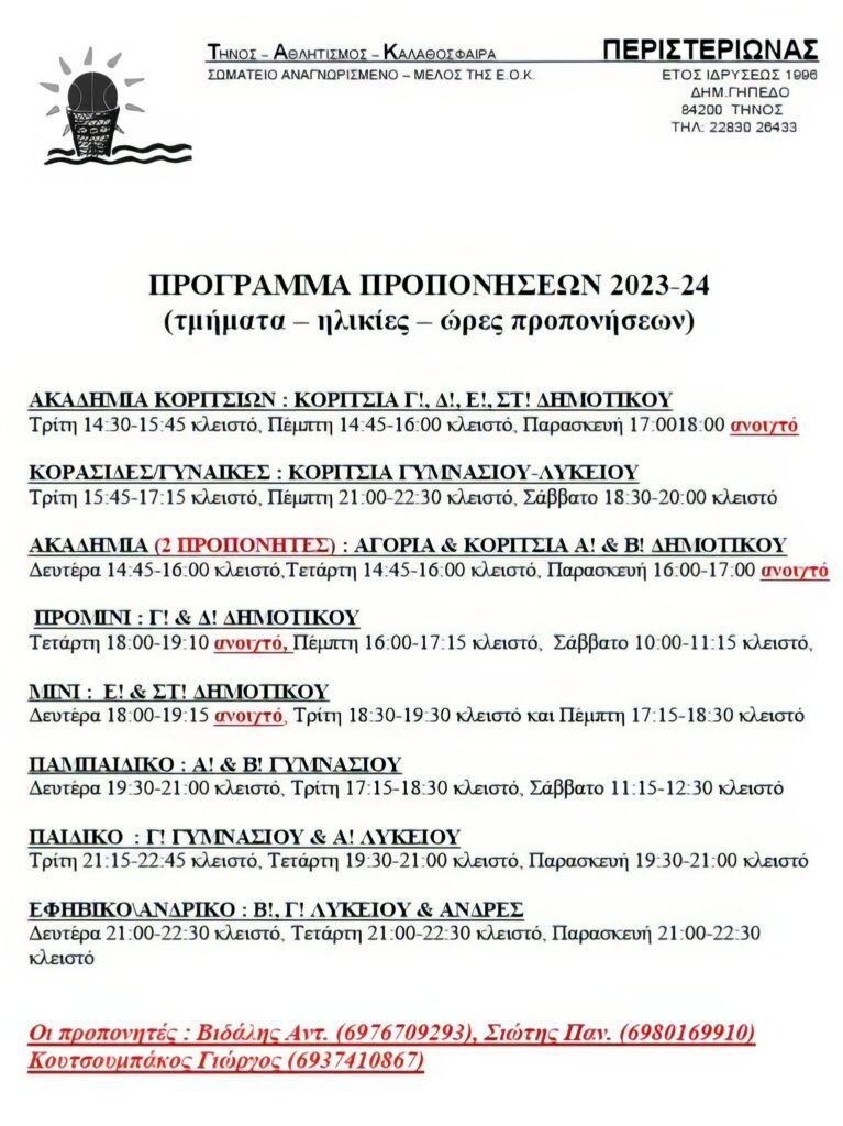 Αγοριών – Κοριτσιών για όλες τις τάξεις του Δημοτικού.